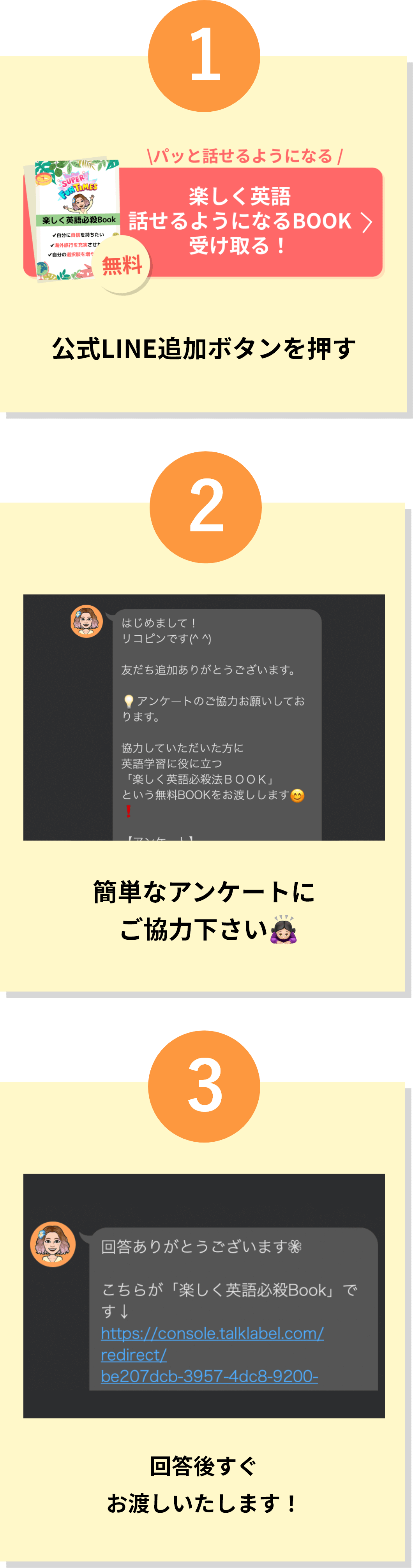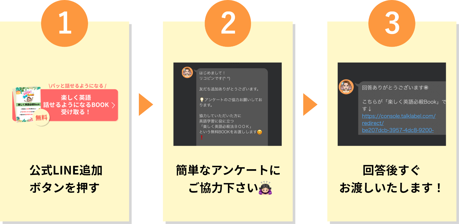 プレゼントをお渡しします。その後は、英語学習に役立つ情報をお届けします。